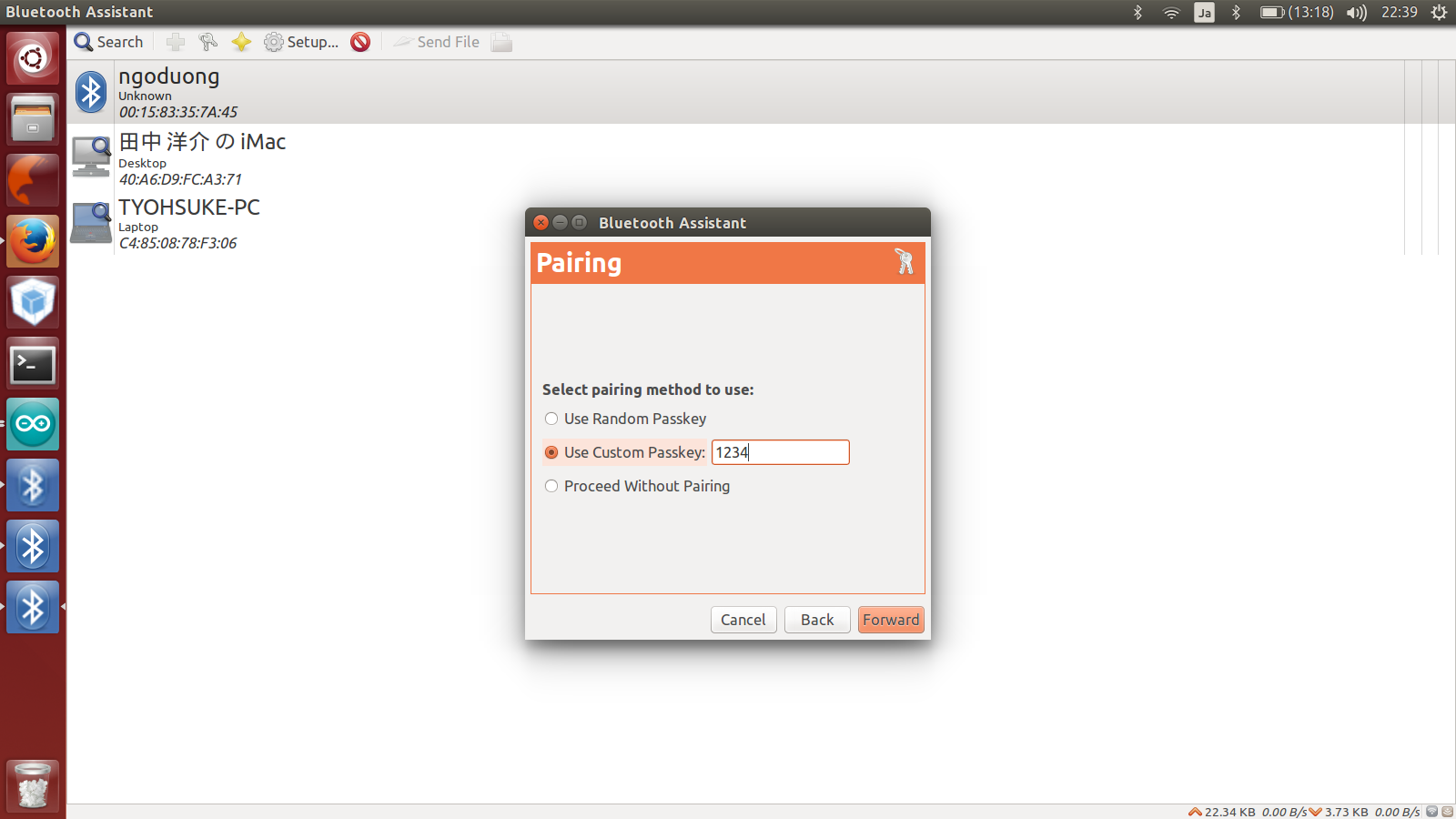 Open Blueman application ->Search ->Add ->Setup->Use custom passkey