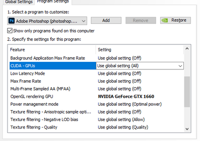 In the NVIDIA control panel it says that the setting for both CUDA-GPU is set to my current GPU