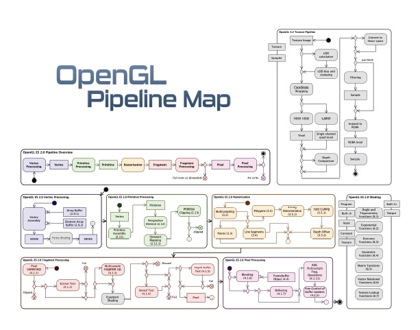 – The OpenGL standard takes geometric primitives such as points, lines, and polygons and converts them to graphic points (pixels) on the screen. This process is done through the graphics pipeline (termed graphics pipeline). Another name for OpenGL that is also shared by the technical world is the OpenGL state machine.