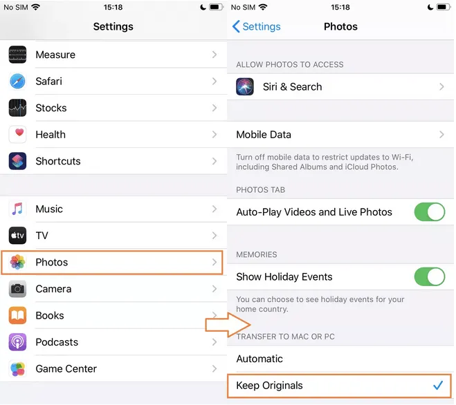 Another simple trick that can help you get past the A device attached to the system is not functioning error is by transferring images and videos in their original format. Wondering what it means? Well, if you transfer photos in their original format, the conversion won’t happen and Windows will receive the digital data in HEVC or HEIF format. Here’s what you need to do.