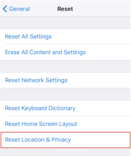 #4 Reset Location and Privacy Settings
