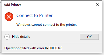 Operation failed with error 0x00000569. Add printer – Windows cannot connect to the printer –