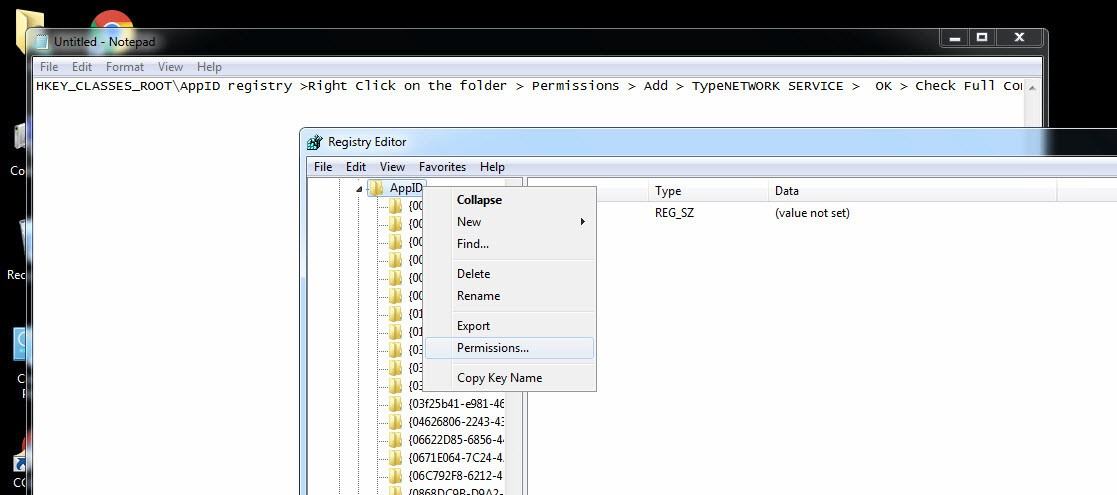 Find the path HKEY_CLASSES_ROOT \ AppID, right-click and choose Permissions …