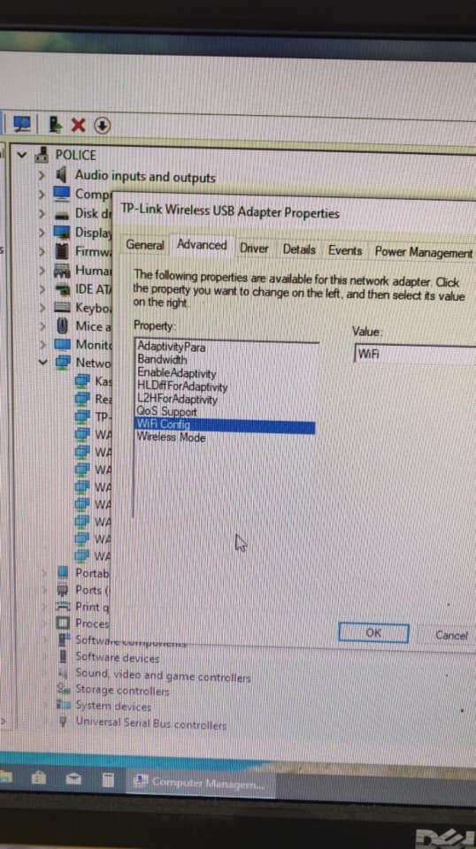Step 2: Go to device manager to find wifi card. Then go to the advanced settings and configure the wifi config as the wifi value