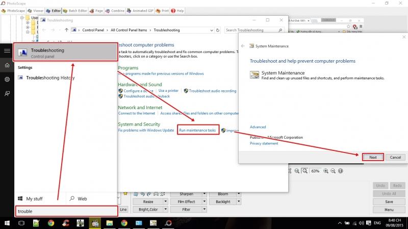You go to Control Panel to go to Troubleshooting or you can find it by trouble as shown below. Next, select Maintenance tasks and keep Next, next to.