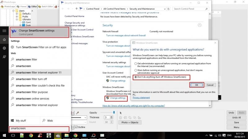 SmartScreen is a new feature developed and integrated from Windows 8 onwards, it helps you avoid dangerous applications on the Internet, links that direct users to other phishing websites and prevent install software that is not properly certified by Microsoft. But if you already have a safe antivirus, this feature is not really necessary, to turn off this feature you can do the following: