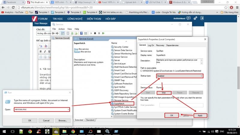 To turn off superfetch, press Windows + R to open the Command Prompt dialog box and type the following: services.msc and press enter.