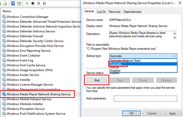 locate the windows media player network sharing service right click on it and start the service.- If the service is already running, right click and select restart the service.