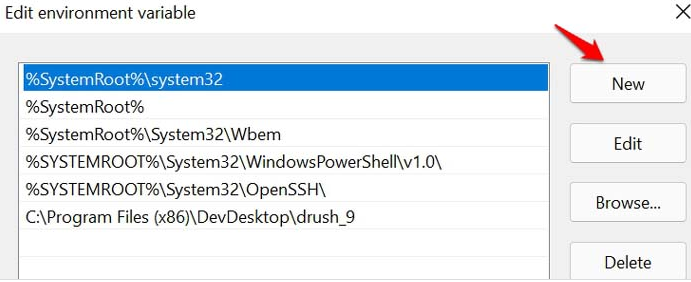 System Variables - Now click New and add the C:WindowsSysWow64 element as a new entry for system variables.