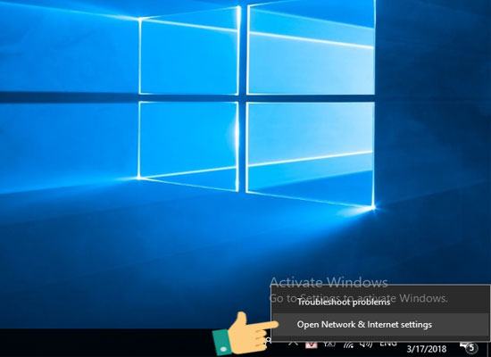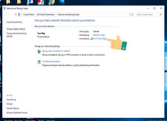 Right-click on the network icon on the screen-> select Open Network and Sharing Center .
