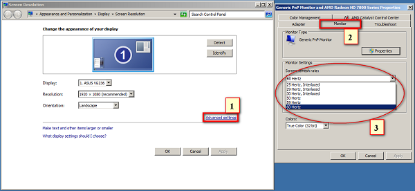 Step 3: Select the Monitor tab, then select the 75 Hertz refresh rate in the Screen refresh rate section
