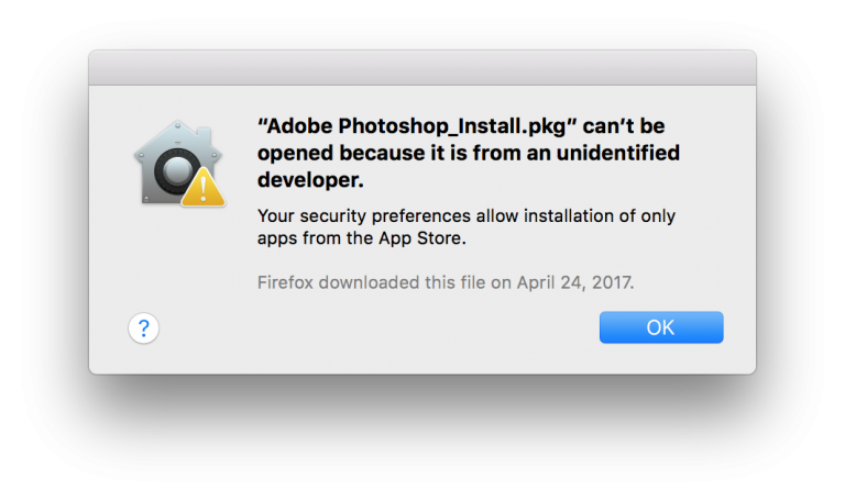 This can be said to be the most basic mistake but most people make. This error not only appears when installing Photoshop but can appear on all the software you download on the Internet today. To handle this error, you simply need to follow the instructions to turn off GateKeeper to allow running applications outside the App Store as the link below is done: