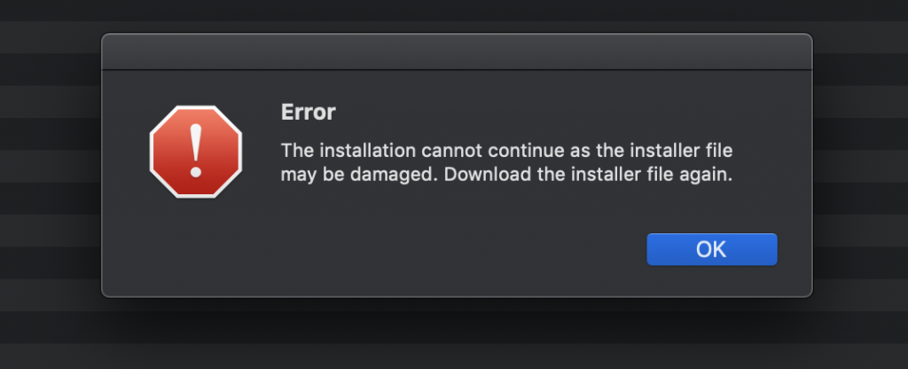 4. Error “The installation cannot continue as the installer file may be damaged. Download the installer file again“