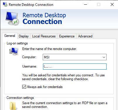 - Open the .RDP file to edit, change the connection file name before running the command: mstsc /edit “connection file”