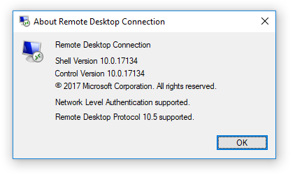 You can check if your version of Remote Desktop supports Network Level Authentication by clicking on the top left of the dialog box above and selecting About.