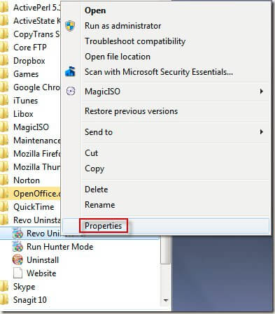 Nhấn chuột phải vào chương trình và chọn Properties: