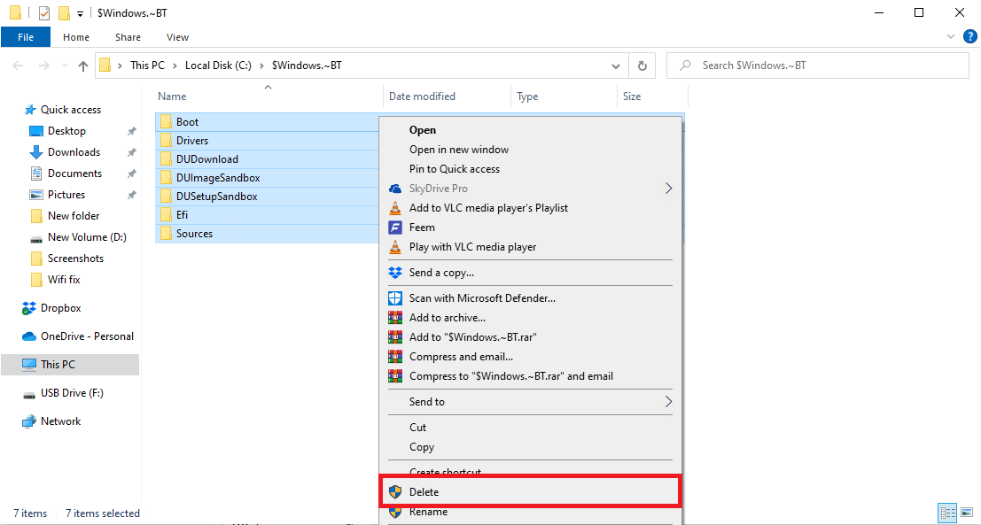 3. Press Ctrl + A keys simultaneously to select all files, right click on them and select Delete option.