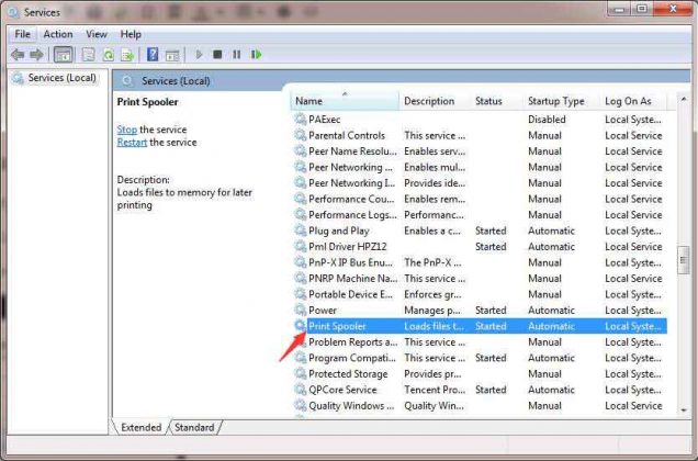 - Search for the item Print Spooler and double-click the selected item’s icon.