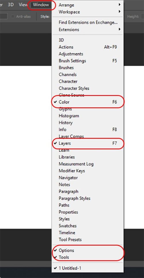 Fix Photoshop toolbar missing on the Window toolbar