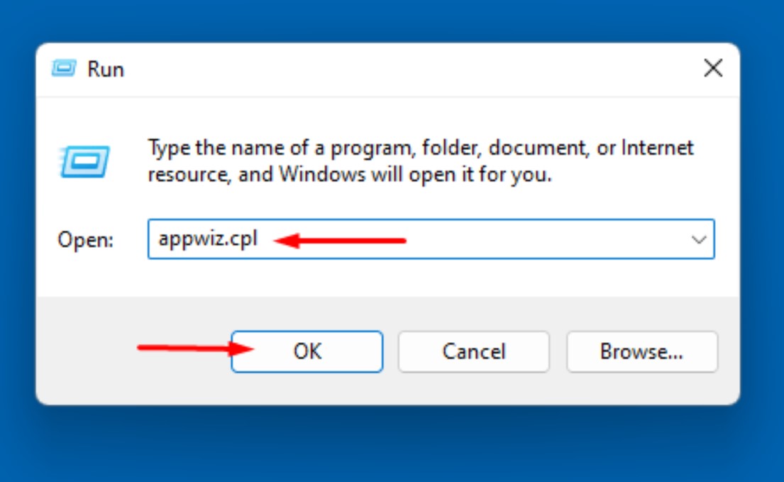 - Type – appwiz.cpl.