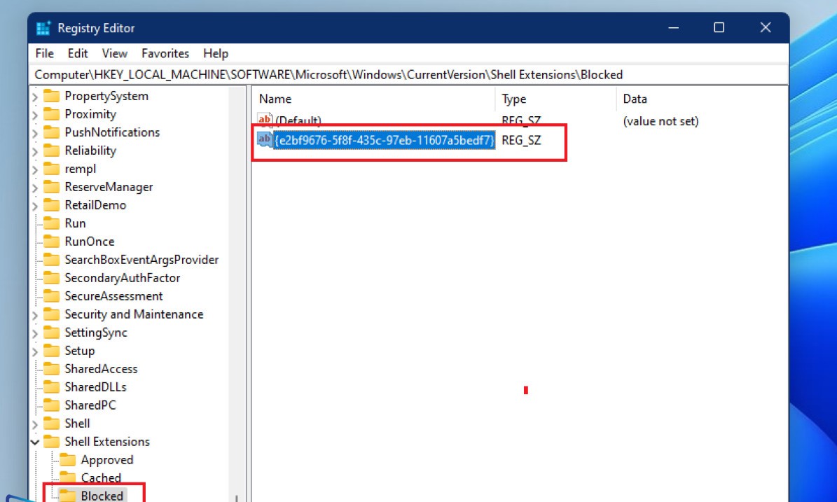 Right click on the newly created file (named Blocked), select New > String