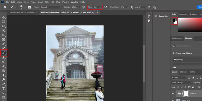 6. Change the Flow setting to 5% and clean up any blurred parts that you think are over-edited.