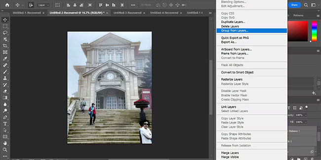 3. Select the top layer and click on the Camera Raw Filter layer while holding Shift. Right click and add these layers to a single group.
