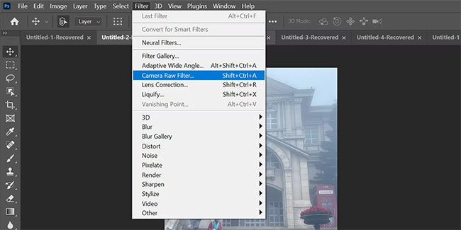 5. Click Filter and select Camera Raw Filter. Alternatively, you can also press Shift + Ctrl + A.