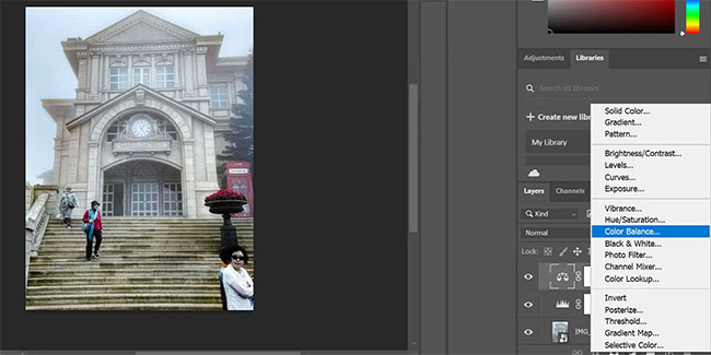 2. Select the Color Balance layer and adjust the pointers to different colors to make the final color adjustment.