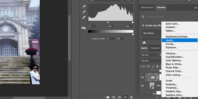 1. Select the Levels adjustment layer and move the slider in the middle to make your image lighter or darker.