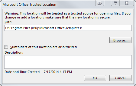 - Click the Add new location button to see the Trusted Location dialog box of Microsoft Office .
