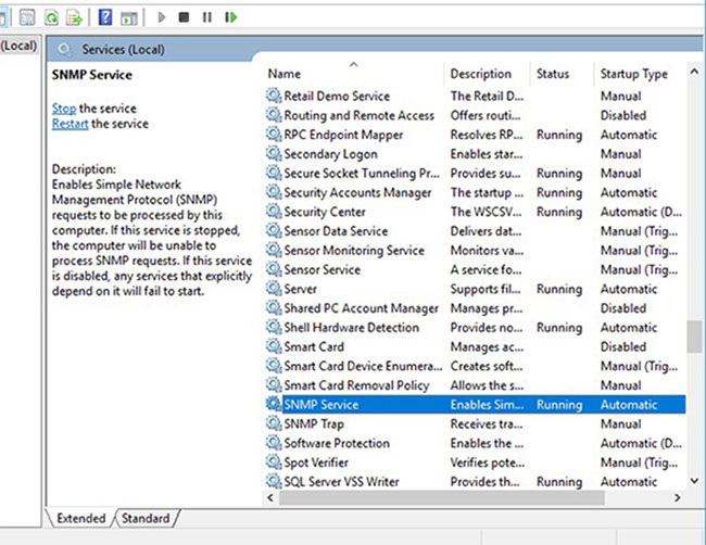How to configure SNMP from the Services console