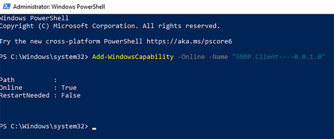 Add-WindowsCapability -Online -Name "SNMP.Client----0.0.1.0"
