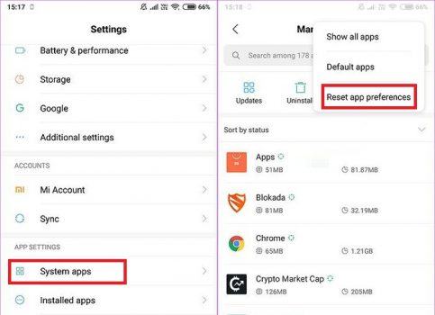You go to Settings (settings) => Apps (applications) => click on the three dots icon in the upper right corner of the screen => select Reset app preferences (reset application options).