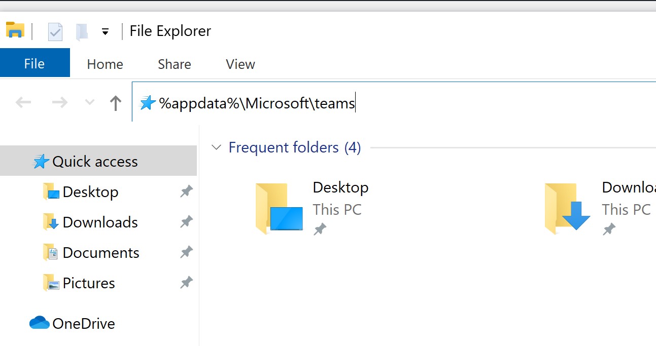 2) Go to File Explorer, and type in %appdata%\Microsoft\teams.