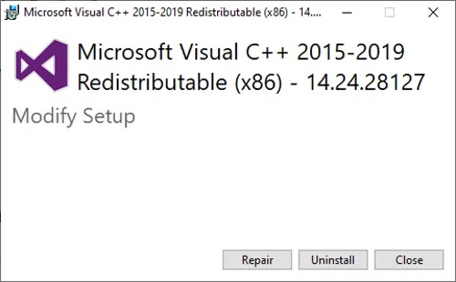 Repair Microsoft Visual C++ Redistributable Packages