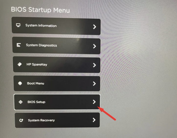 Use the arrow keys to focus on the options listed on the screen and highlight the Enter BIOS Setup option. Then, press Enter on the keyboard to load the BIOS settings on the device.