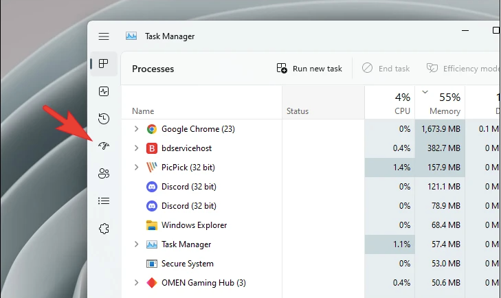 Open start menu, search for and open task manager.
