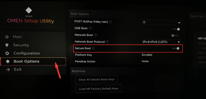 On the left side of the screen, click Startup Options. In the right section, enable the Secure Boot option. If there is a drop-down menu, click the menu and select the Enable option from it.