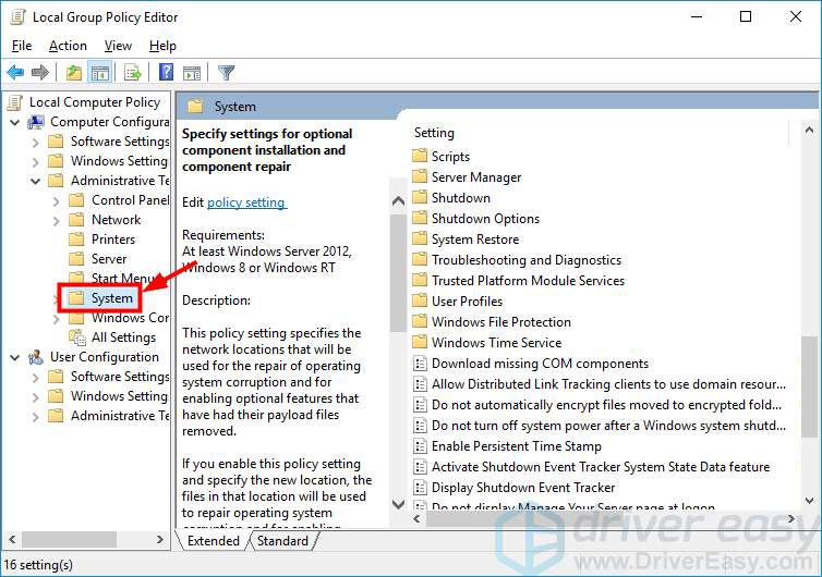Navigate to Computer Configuration> Administrative Templates> System.
