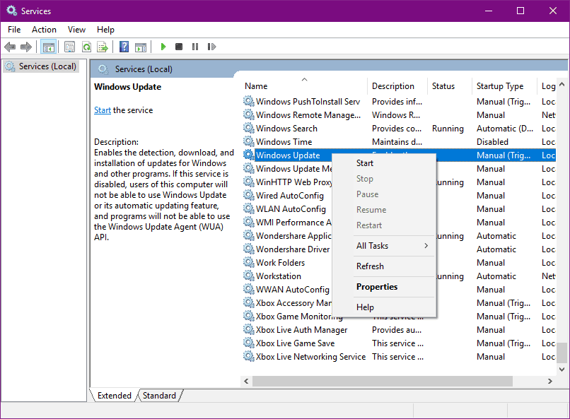 The most important service for getting updates in Windows 10 is the Windows Update service. If the service is not running properly, well, you won’t be able to get any updates. So make sure it runs by doing the following: