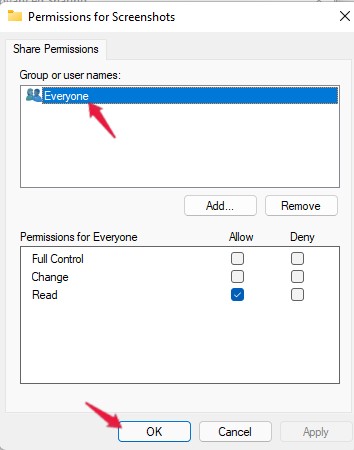 everyone under Enter the object names to select - Click “Apply” and then click “OK” to save the changes and grant security permissions.