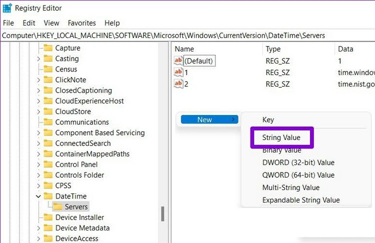 You can create more string values to add more time servers if you want. Once added, follow the mentioned steps of way 3 above to change the time server on Windows.