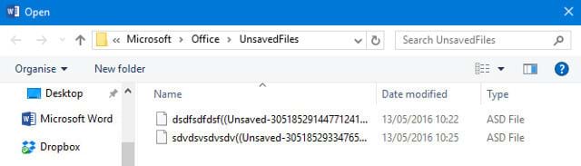You will see a window showing the Office’s UnsavedFiles folder. Any documents that the software manages to restore will appear as ASD files – the automatic backup used by the Office suite. As you can see, they are named random. Therefore, users need to base on the time they were last modified or try to open them to see if it is the document they want to restore.