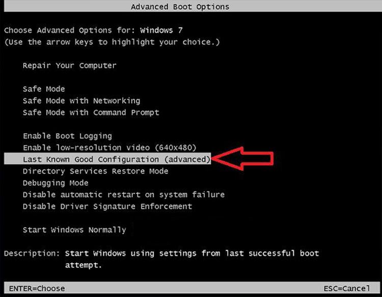 Step 2: When the Advanced Boot Options screen appears, use the arrow keys to select the line of Last known Good Configuration (advanced) and press Enter.