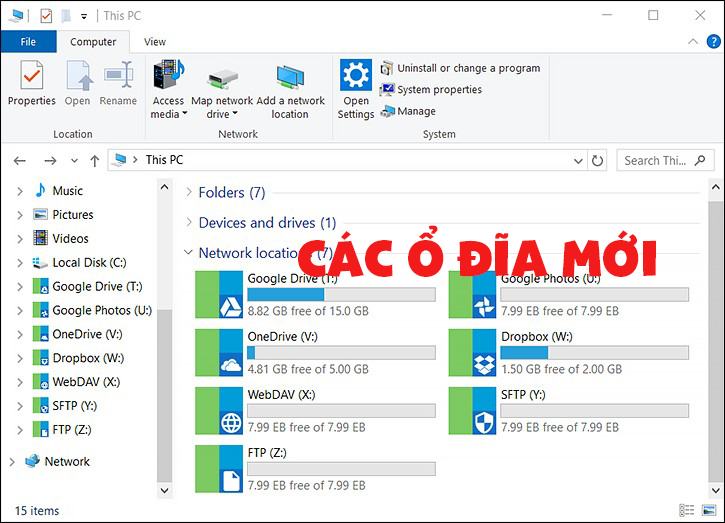 RaiDrive is free software that helps you create Cloud drives right on your computer. After installation, there will be more drives inside My Computer / This PC, besides the usual C, D, E drives. If you are a regular user of Google Drive or OneDrive to save data, this is a good solution to save your computer’s hard drive and easily manage files.
