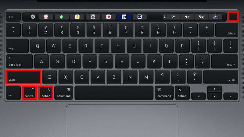 - Press the Power button and the Shift + Control + Option key combination at the same time. Also release them at the same time.
