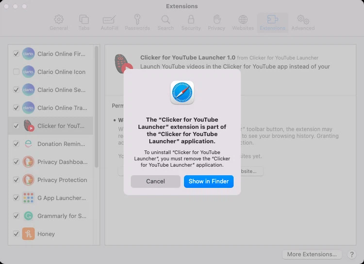 As mentioned above, when you don’t use the extensions anymore, you can turn them off or completely remove them. Not only does this speed up the Safari browser, but it’s also a way to find problems with the browser when it crashes. To disable or remove unnecessary extensions from Safari, do the following: