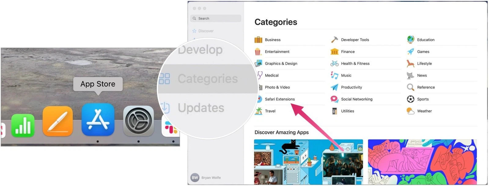 Like apps, you can find extensions for Safari through the Mac App Store. Proceed as follows:
