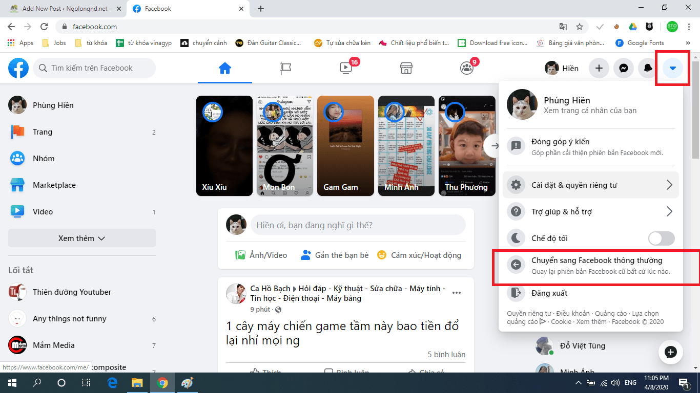 Instructions for changing the old and new Facebook interface on Google Chrome. Facebook has given it a new interface experience on many accounts, including myself. The first impression of the new Facebook interface is that it feels like you are using it on mobile. So how to activate the new interface on Facebook, please see how to do it right after.